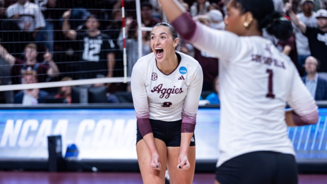 For the first time in program history, Texas A&M volleyball is headed to the Final Four after upsetting No. 1 overall seed Nebraska on Sunday afternoon in Lincoln. The Aggies will face Pittsburgh on Thursday, Dec. 18, at the T-Mobile Center in Kansas City.