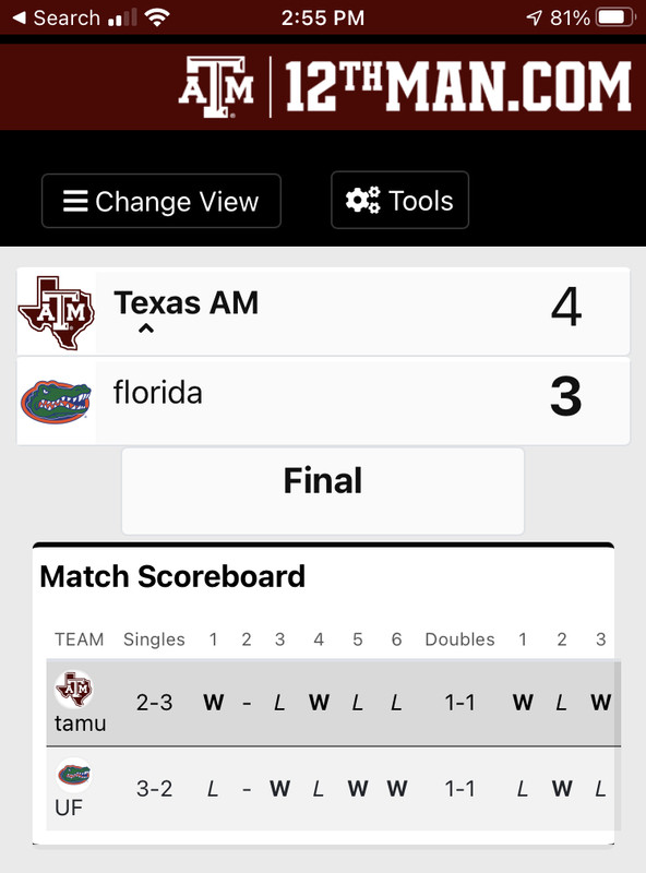Pittman fights hard and makes balls but isn't good enough to win at 6 against teams like this.Aceswimmer09 said:
