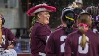 Aggie softball defeats Texas in exhibition action at Davis Diamond, 12-6