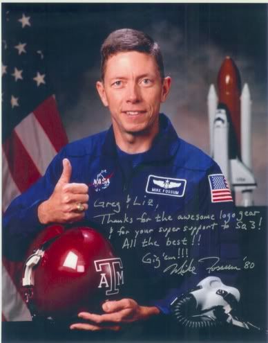 "I kind of wish I was the third Aggie in space," said Fossum, who has master's degrees in systems engineering and space science. "It's not like me to make a big fuss about this."