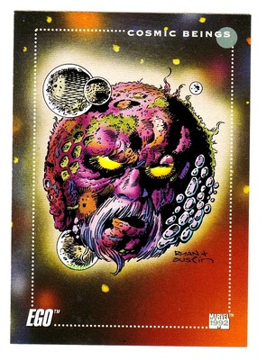I'm 36 years old and when I was growing up in the 90s we had Marvel collectors cards. Couldn't play games with them or anything you just collected them and traded them. I can still remember having the Ego card. Whelp, at times we have closed captioning on and when Kurt Russell was macking on Star Lords momma at the very beginning of the film at one point his name pops up with the dialogue. This is what immediately pops in my head: