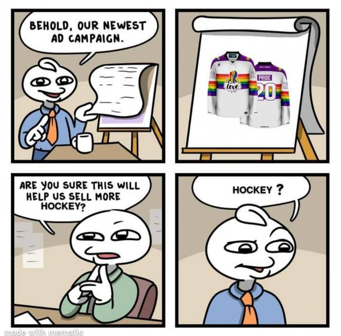 From reddit: "The NHL should see this and realize how much work there is to be done still. One small situation blows this up and anti-lgtbq people come out of the wood work to loudly support and use it to spout their hate."