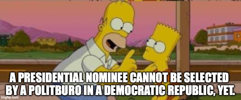 The Democratic Party, the party who has claimed "Donald Trump is a threat to democracy!!", just subverted the will of the people by deposing their democratically-chosen nominee. They deposed Biden not because he's done something unforgivable or unamerican, but because they're terrified he (and by extension, they) will lose the election to Trump.