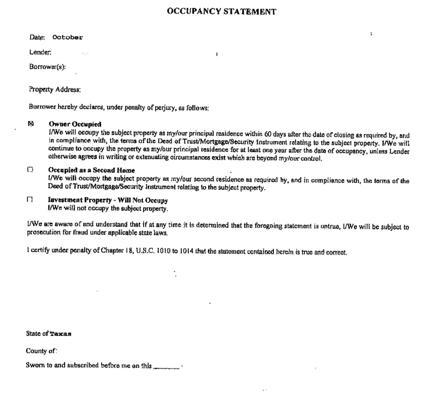 d) These types of misrepresentations were the primary cause of the 2008 financial crises. People lying about their income and the value of the home they were buying, and how they were going to use them, is the exact reason why we see this very strongly worded form that the borrower has to sign related to misrepresentations. We have been down the road before of "this is no big deal", and, in aggregate, it is in fact a very big deal (especially when it is magnified exponentially with credit default swaps and the like, but that gets really complicated).