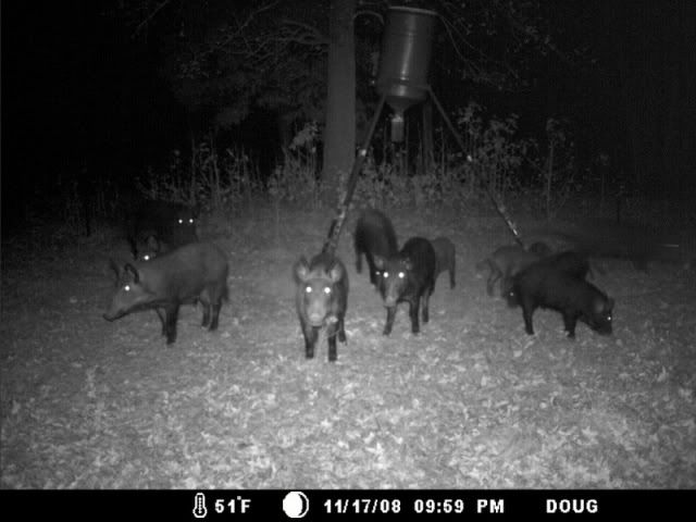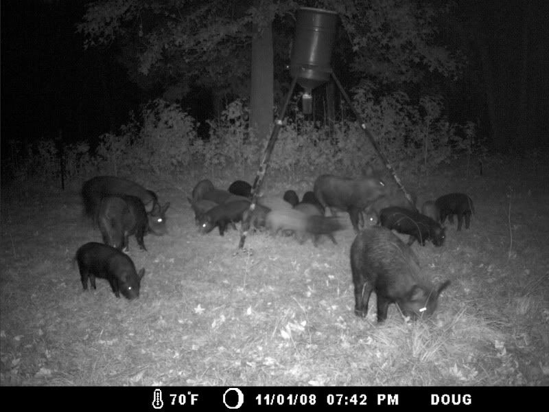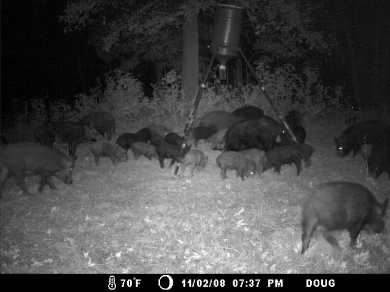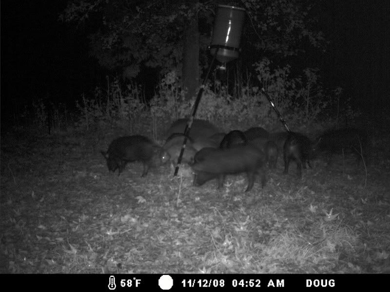 They're back. I just checked my game camera again and here's what I saw. I bet I had 500 pictures of hogs. This is northeast Texas...