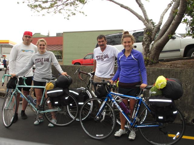 The trip began in Astoria, the northernmost city on Highway 101. Here is the group, ready to launch into the adventure. Just out of the Navy, my older daughter showed support for her sister’s and my alma mater by sporting Texas A&M clothing for the duration of the trek.