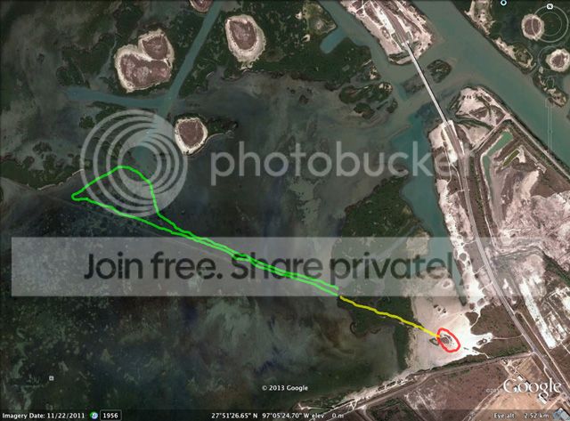 The water South of JFG, Pita Island, Pure Oil channel, King Ranch Shoreline - all brown.