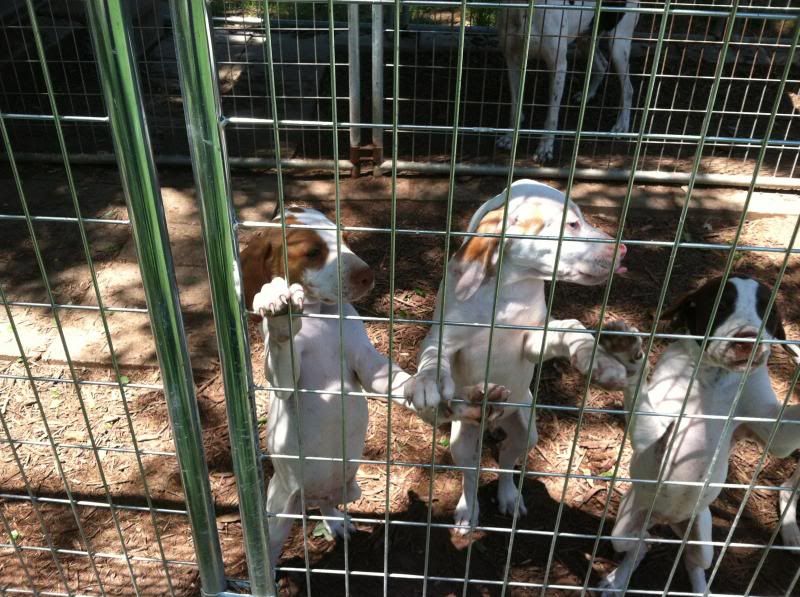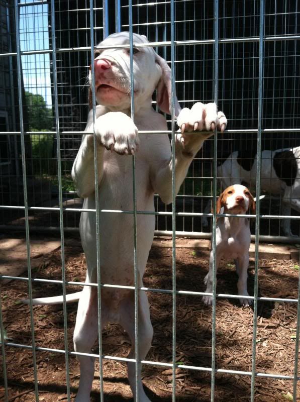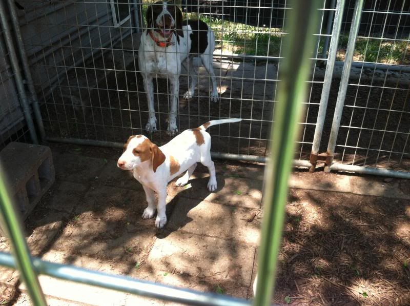 Both are males and both are great looking and acting dogs. Both are tan/white, with one being only mottled tan on his head with his body being solid white. The one with solid tan spots will make someone a great indoor pet/gundog. He is very mild of temperment and when everyone charges off for a runs he is frist back and just wants to get loved on.