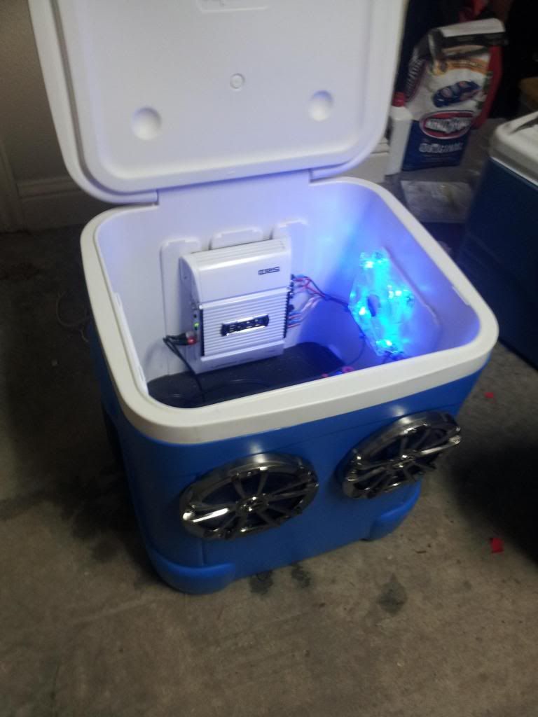 I built mine out of the Cube Cooler, the Pyle Amp, and 4 Marine Dual Speakers (2 - 6x9's and 2-6.5's). I also installed led lights, a car charger, and a spare switch on a switchboard. I also have a watertight box and a woodgrain top for all of the accessories. Sounds amazing and will last a good 15 hours off of the 275 lawn and garden battery.