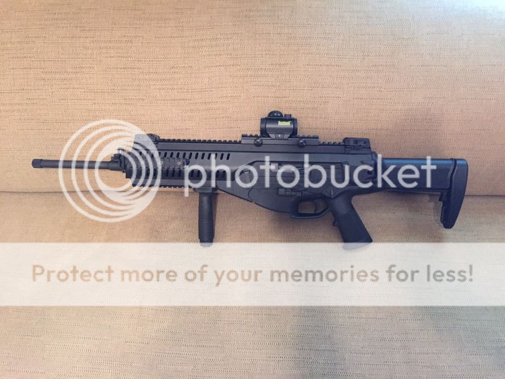 I got lucky and won a gun in a gun raffle a few weeks back. A Beretta ARX 160 .22LR. It is a neat little gun. I already have a 10/22 but this one seemed a little too cool to trade. I already took the muzzle break off so I can attach my Huntertown Arms Suppressor. It cycles very well with both sub and supersonics. I had a bushnell TRS red dot laying around that I had on my slug shotgun however I cannot get it to zero with any relaible accuracy on the ARX so i'm looking for other options but dont know if i want a traditional long scope. I'd like to keep the optic around $100