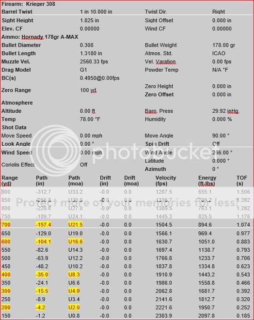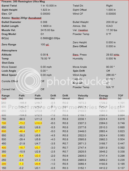 The chart below is not accurate for 200 yards, 300 yards, 600 yard and 700 yards