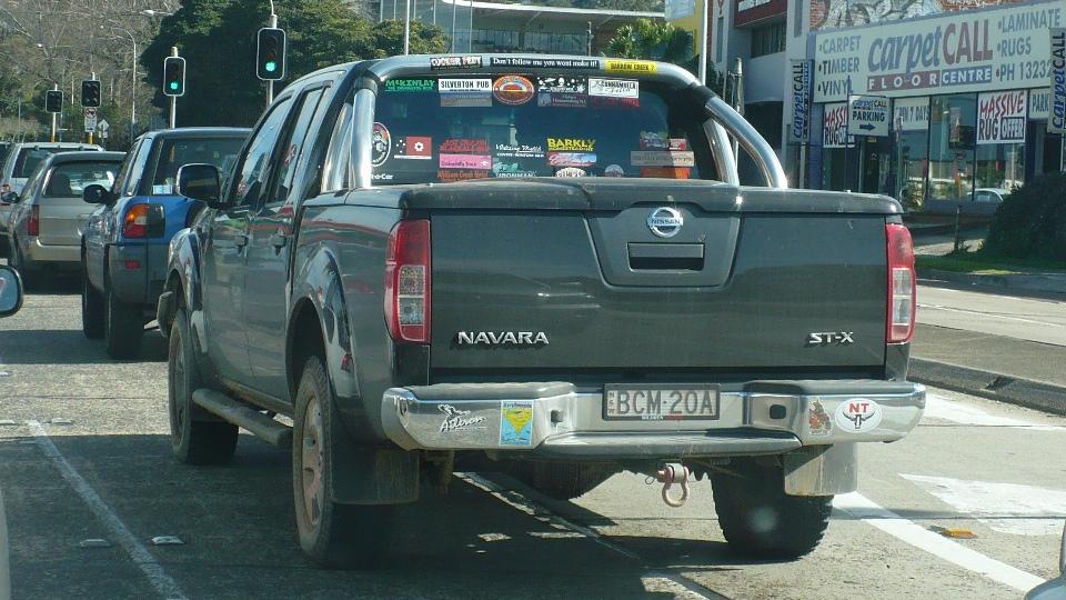 Here's an ordinary Nissan Navara, but I had to take this picture because I just loved the bumper sticker in the middle of the light bar.
