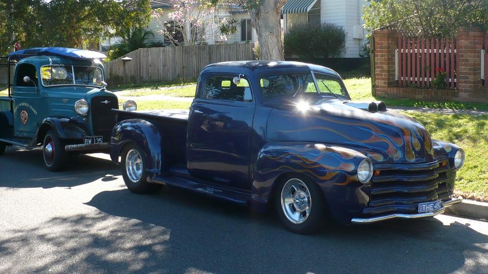 And you remember the old Chevrolet from an earlier picture. This time he's got a surfboard on top and a friend with flames.