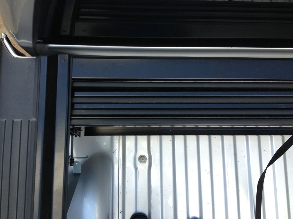 On the inside of the truck bed, at the front, there are two ~45 degree angle pieces that help load the cover onto the rails. A picture is below to give you an idea. These will become important later because they are one major flaw for the Peragon cover.
