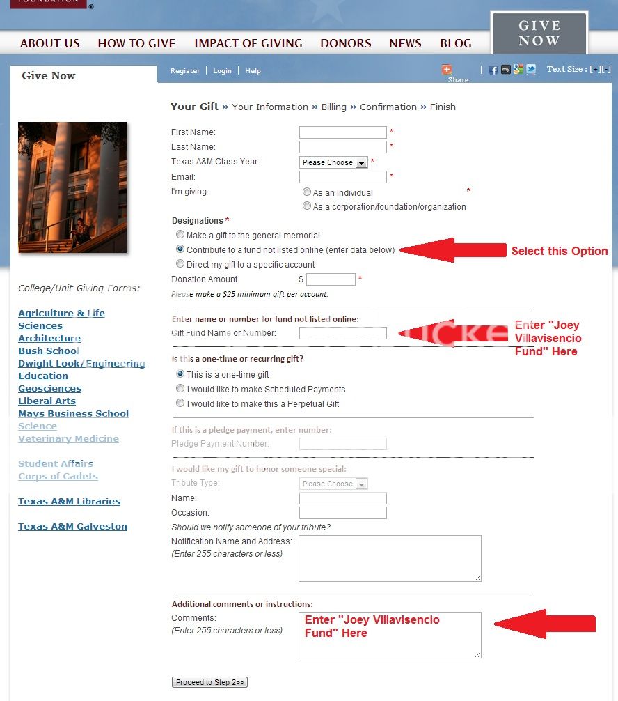1. By check to the "Texas A&M Foundation" with "Joey Villavisencio Fund" in the memo line