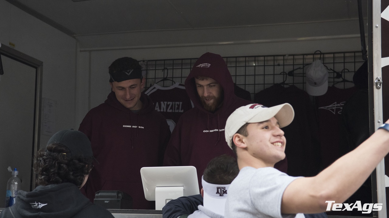 Got a little story for you: On Saturday I was all suited up in my #ComebackSZN gear and was second in line at 10am to meet the one and only Johnny Manziel out at TexAgs. As I was getting ready to purchase my gear at the merch trailer, my card was declined. I scrambled to see if I had enough cash to pay for everything, but I came up short. I unfortunately had to tell the cashier that I would have to leave some of the stuff out of my purchase, but then I heard somebody say, "I got you G, don't worry about it". As I looked up, lo and behold it was Johnny Football himself. The person I have looked up to since I was 13 years old offered to buy me the merchandise when I couldn't. I shook his hand at least 5 times and thanked him because he didn't know how much his gesture truly meant to me.