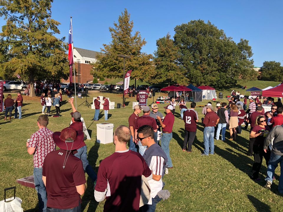 Every year The Association of Former Students partners with local A&M Clubs in away game cities to host the All-Aggie Tailgate. The event, which includes free food, free drinks and Aggie camaraderie, is one of many ways that The Association works to accomplish part of its mission of perpetuating ties of affection and esteem formed during university or college days, all while helping local A&M Clubs raise funds for scholarships.