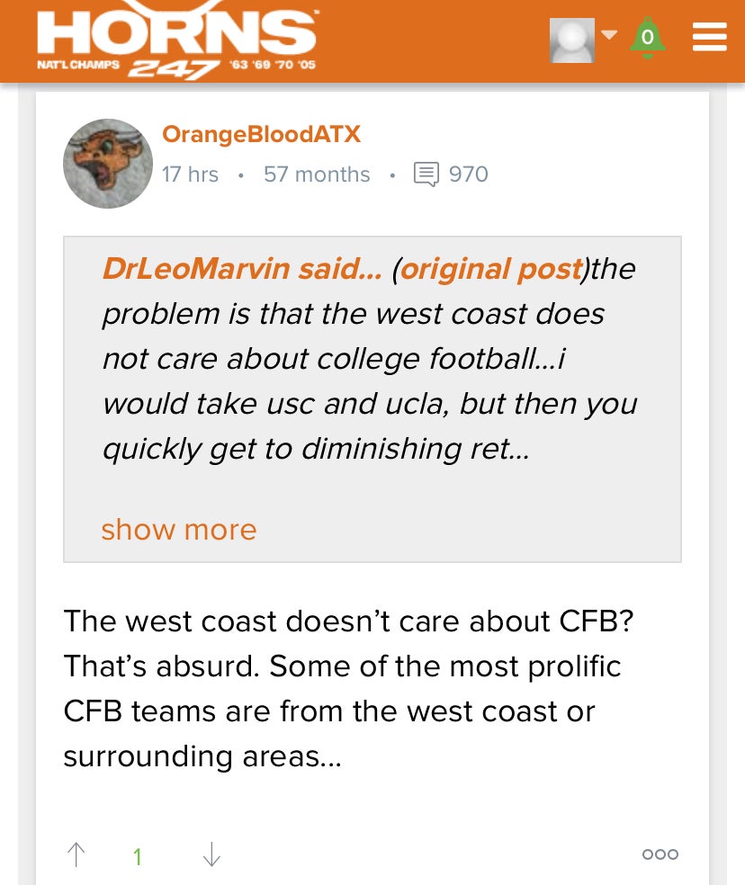 It would indeed have to be a hell of a lot of money for each team for multiple SEC teams to vote for tu. (And I am not counting media contracts you apparently think would increase because the SEC already has the 29 million + people within the state of Texas in their numbers).