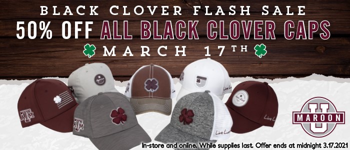 Wednesday is Your Lucky Day! All day March 17th, Black Clover caps are 50% off at Maroon U!