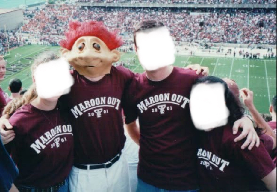 Gameday was on campus for the Oklahoma St. game in 2001, not 2000. I made it on tv several times wearing a maroon troll head I bought with meal credits from the Commons store.