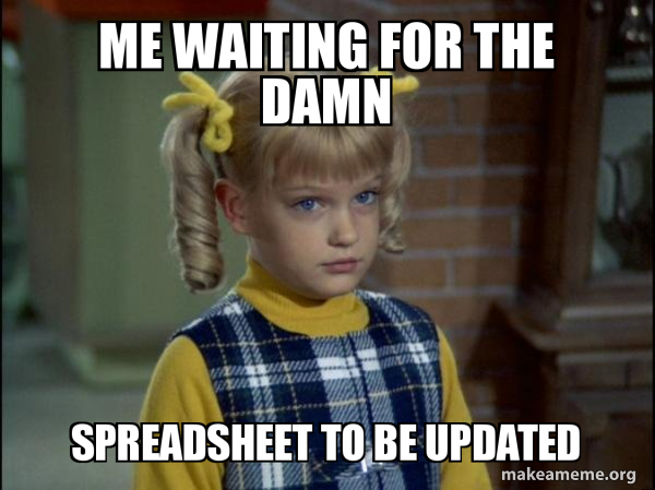 I was wondering what kind of computer you're using that it takes so long for a spreadsheet to come up.