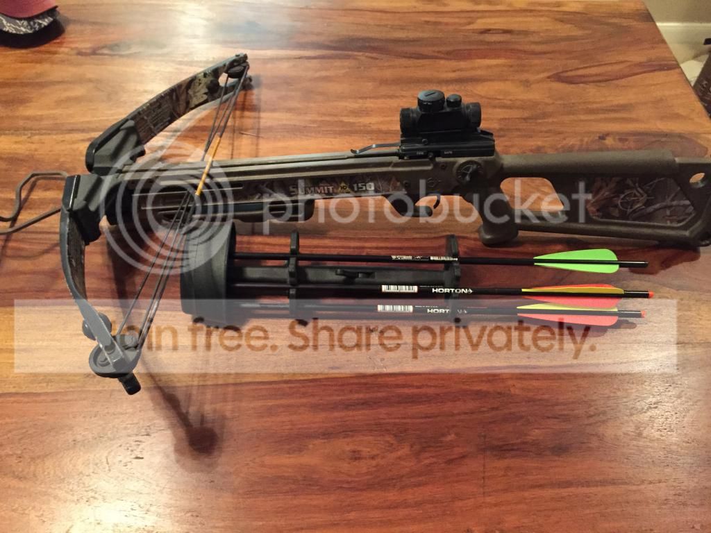 I am selling a Horton Summit HD 150 Crossbow that I bought my wife 2 years ago. I bought it hoping she would use it while I bow hunt. The bow is practically