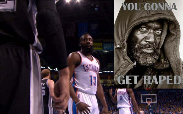 what's funny about that pic with Harden, is that creepy dude looks just like this homeless guy in downtown OKC everyone knows as "Tim"