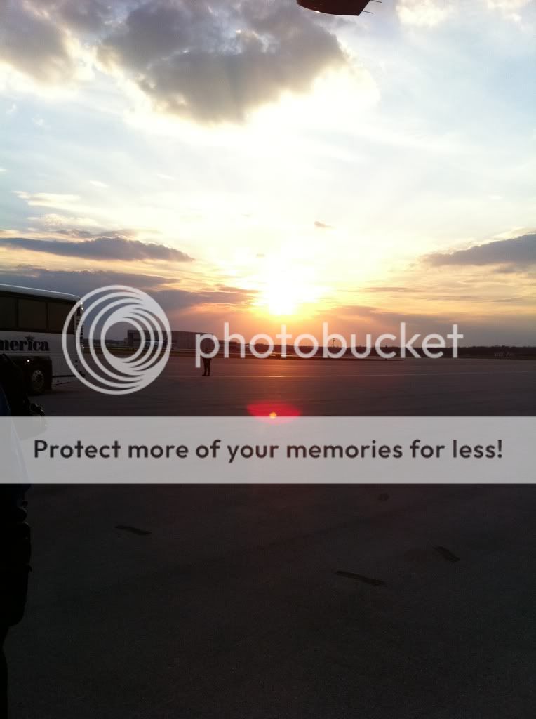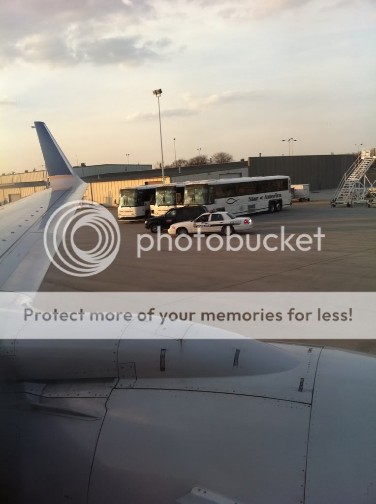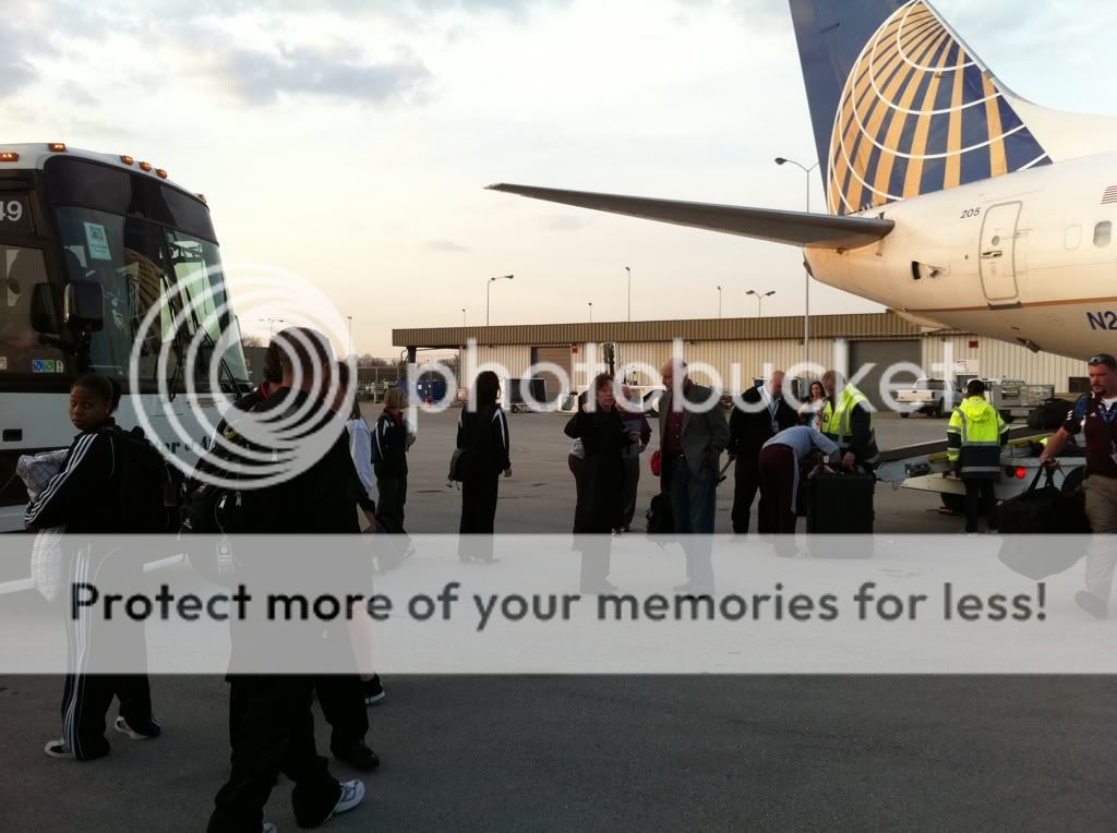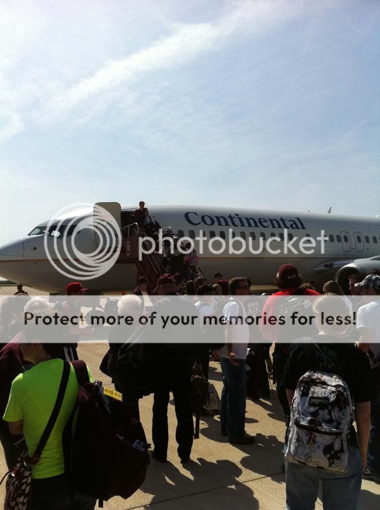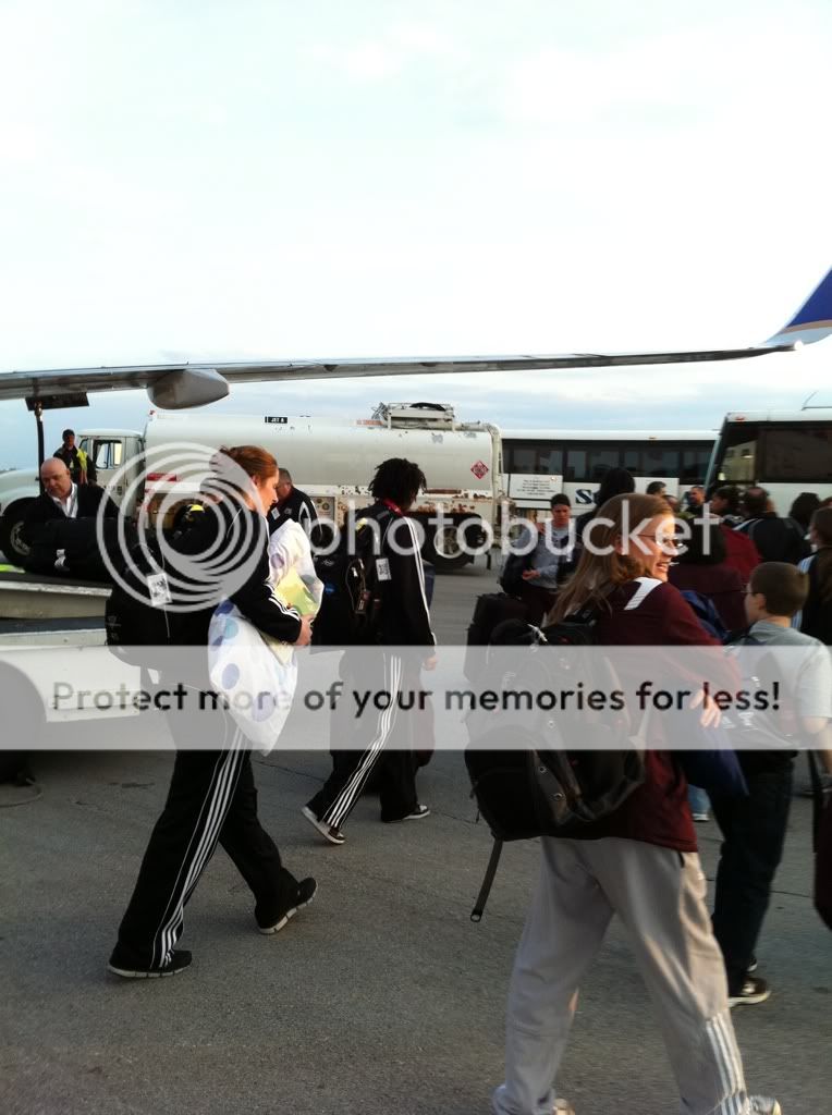 Our first class plane landing. It'll have the team, band, dance team, yell leaders, and various media/staff