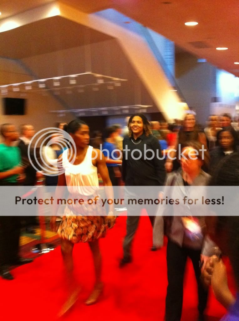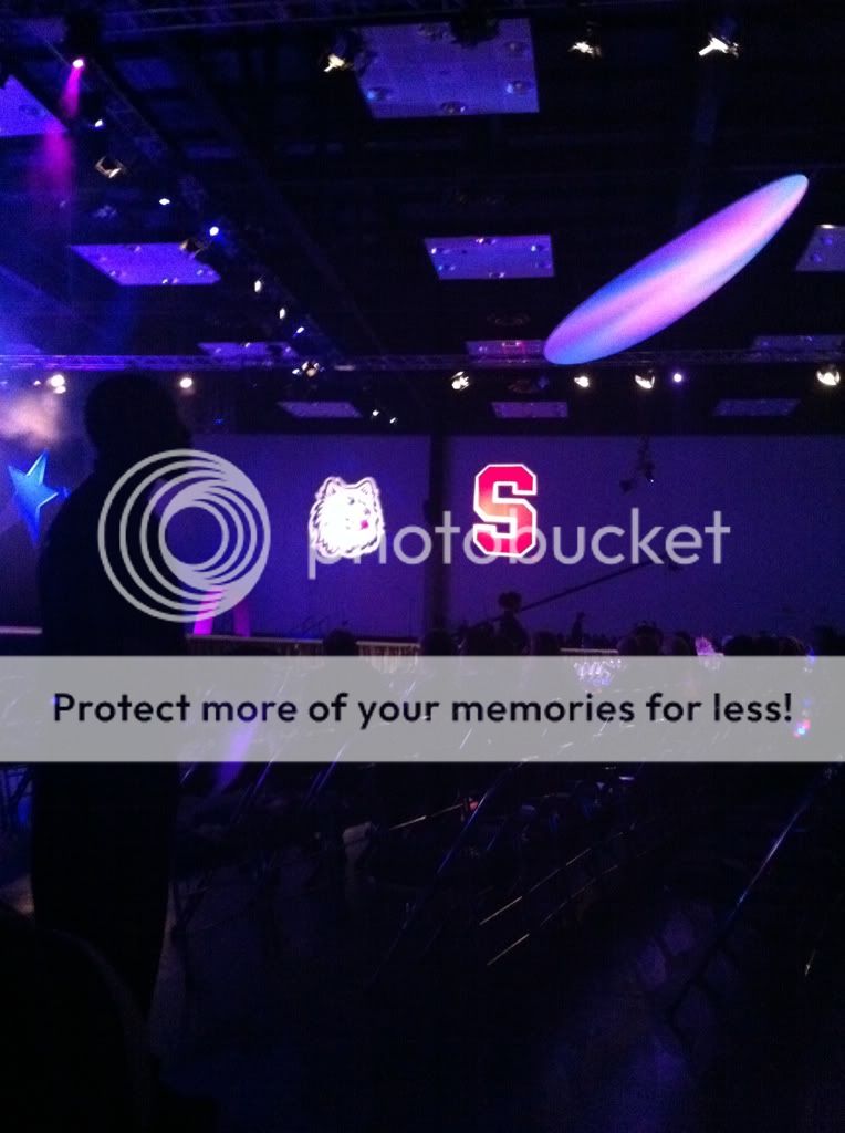 These pictures are from the event tonight. Basically it was a chance to introduce all the teams and let them walk down the catwalk (quite humorous to say the least.) Coach Blair was the funniest part of the evening by far. The host was Sportcenter's Sage Steele. When Syd Colson came up, sage proceeded to rub her biceps for a couple minutes. Syd said "this isn't awkward at all."