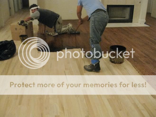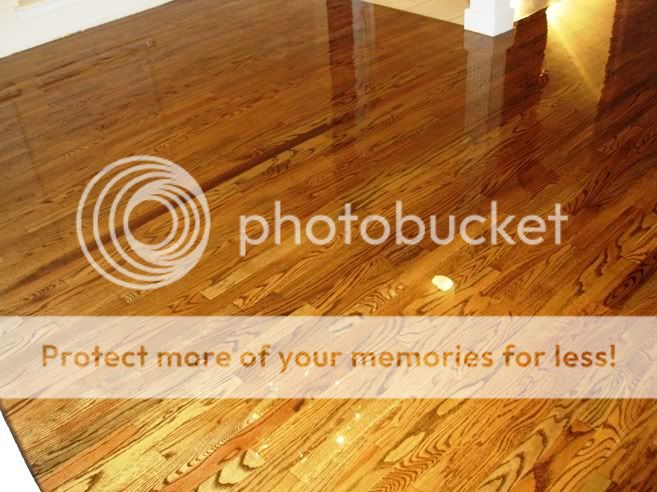 Pic of dining room wood floor with Polyurethane still wet. Mom loves her wood floors.