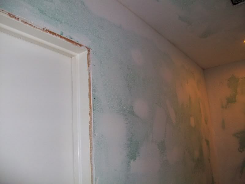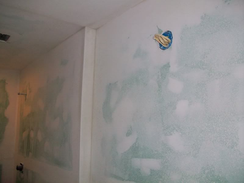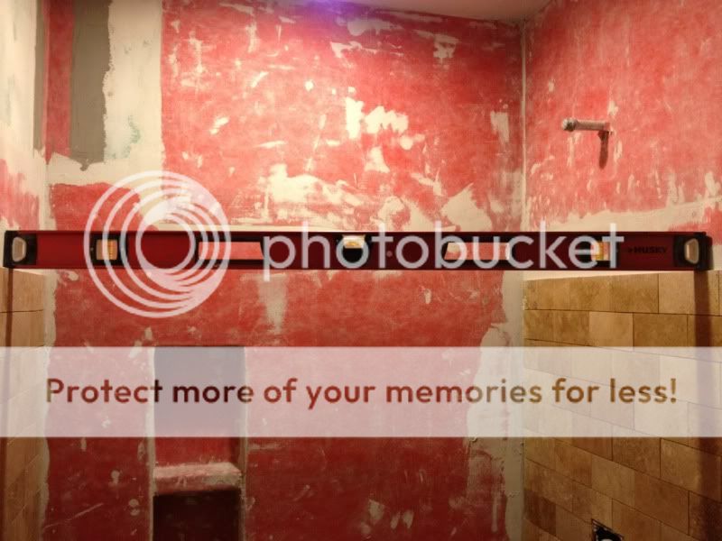 We stopped part of the way up because we will be doing a 4" band of glass sticks, then more wall tile, then another 4" band of glass sticks, then finishing with wall tile up to the ceiling. The 3"x12" bullnoose were installed to the ceiling so we had the border done: