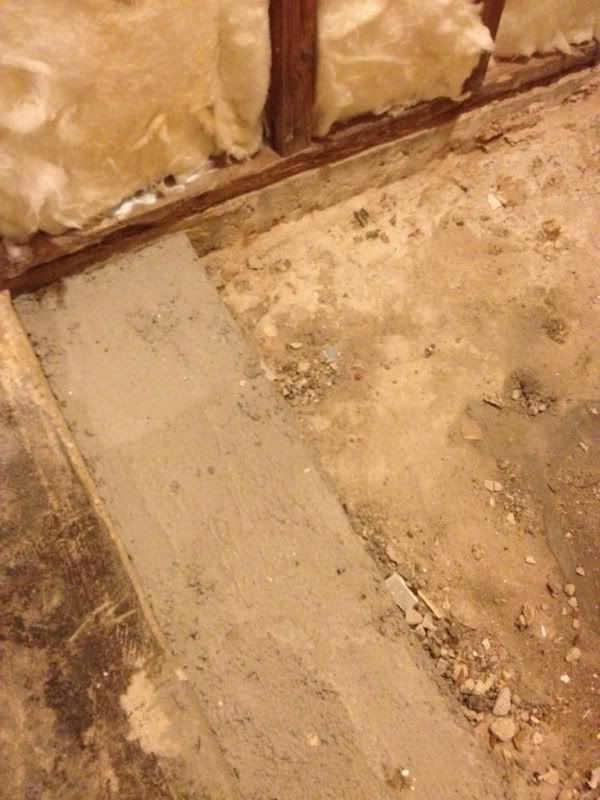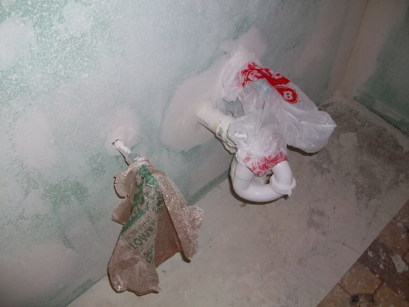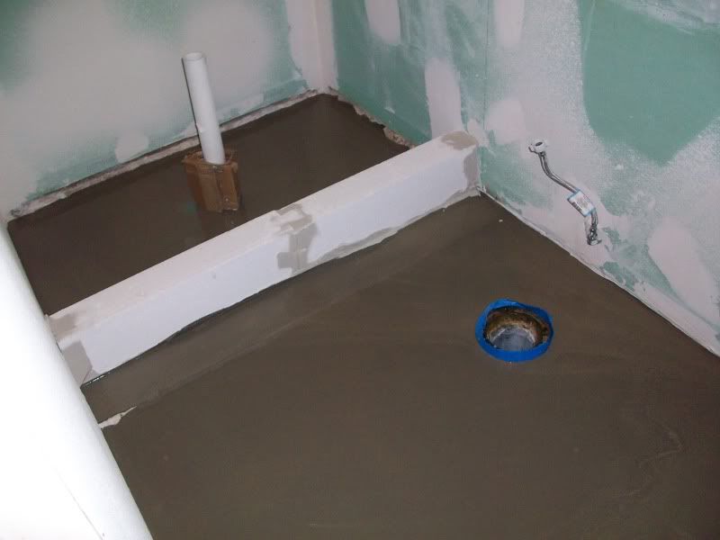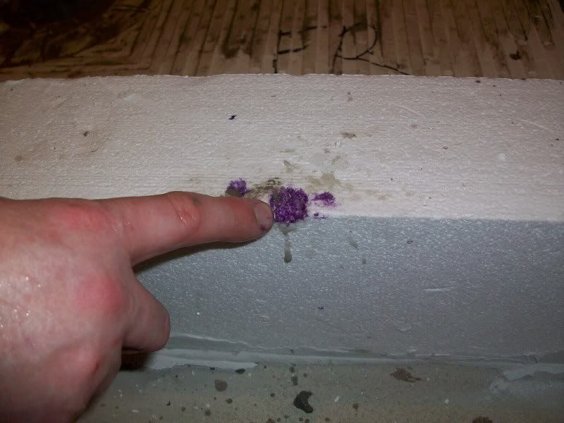 When connecting the new drain to the current drain pipe, some primer spilled on the styrofoam curb and started to eat it: