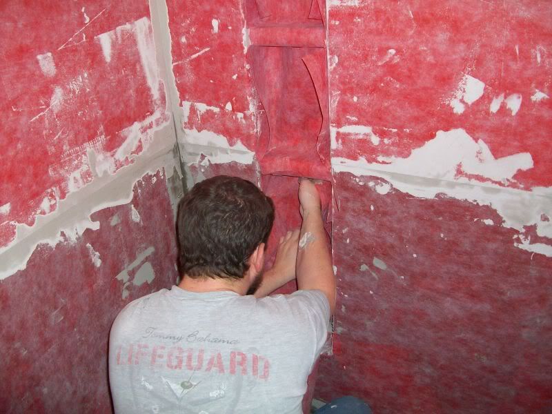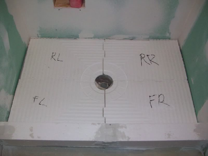 First we had to install the Prova Shower System to completely waterproof the shower. The first step was to lay the pre-sloped shower pan, which had to be cut to fit the existing area: