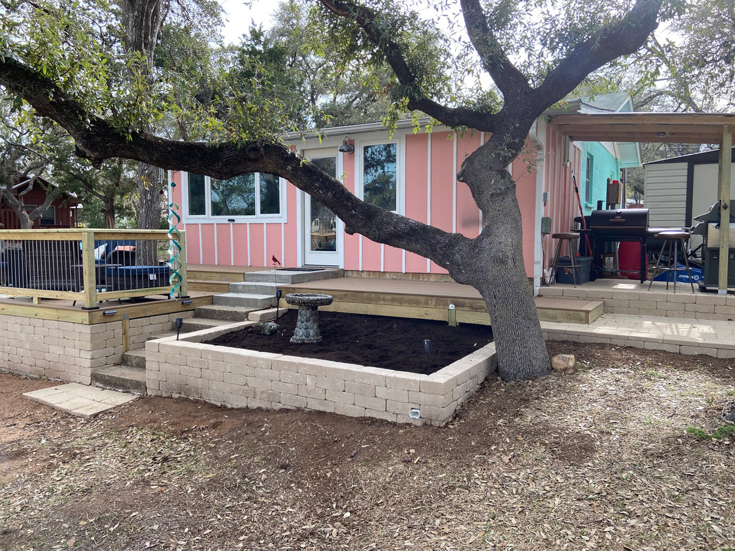 Here's the completed deck, retaining walls, and my grilling patio. Real happy how it turned out. I've got the pavers to do a patio in front of the deck but I haven't started that project yet.
