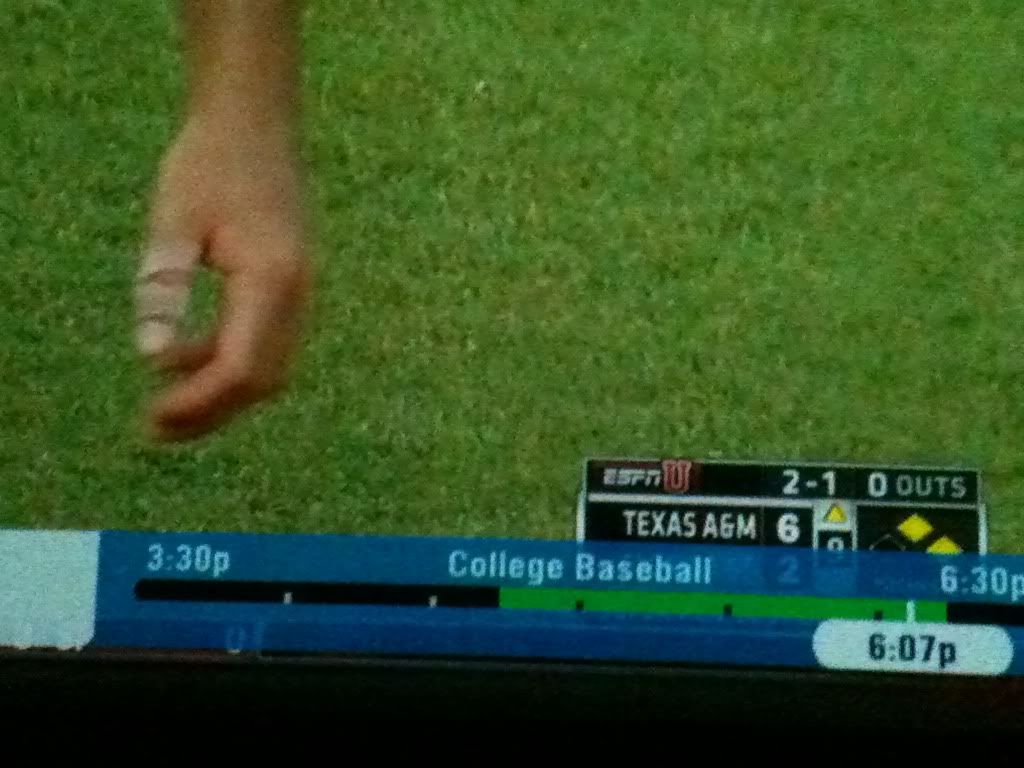 One of the dozen pitchers FSU trotted out in the 9th inning had a bandage on the thumb of his pitching hand.