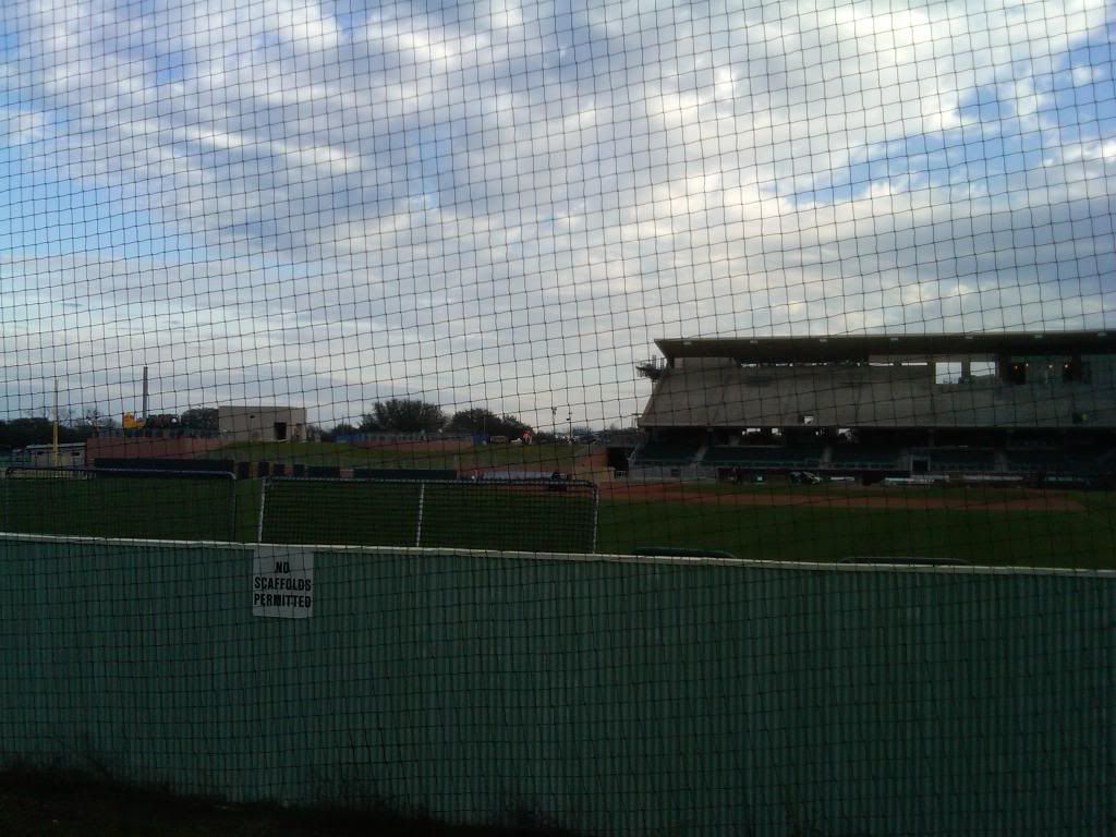 quote:Most fans don't want to sit behind the net. Aggie Tickets sent me a photo from my seats, and it appears that the net stops about even with the tunnels down to the club--not quite to the edge of the dugout. I'm a little dissappointed that my view of the plate (but not the majority of the field) will now be through the net, but at least its a new net with no support poles.